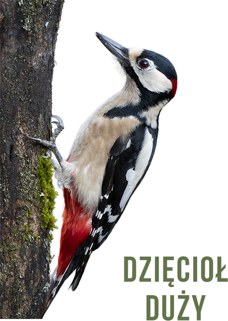 – dziób silny, zwykle dłuższy o dłutowatym kształcie: Dzięcioł czarny, Dzięcioł duży